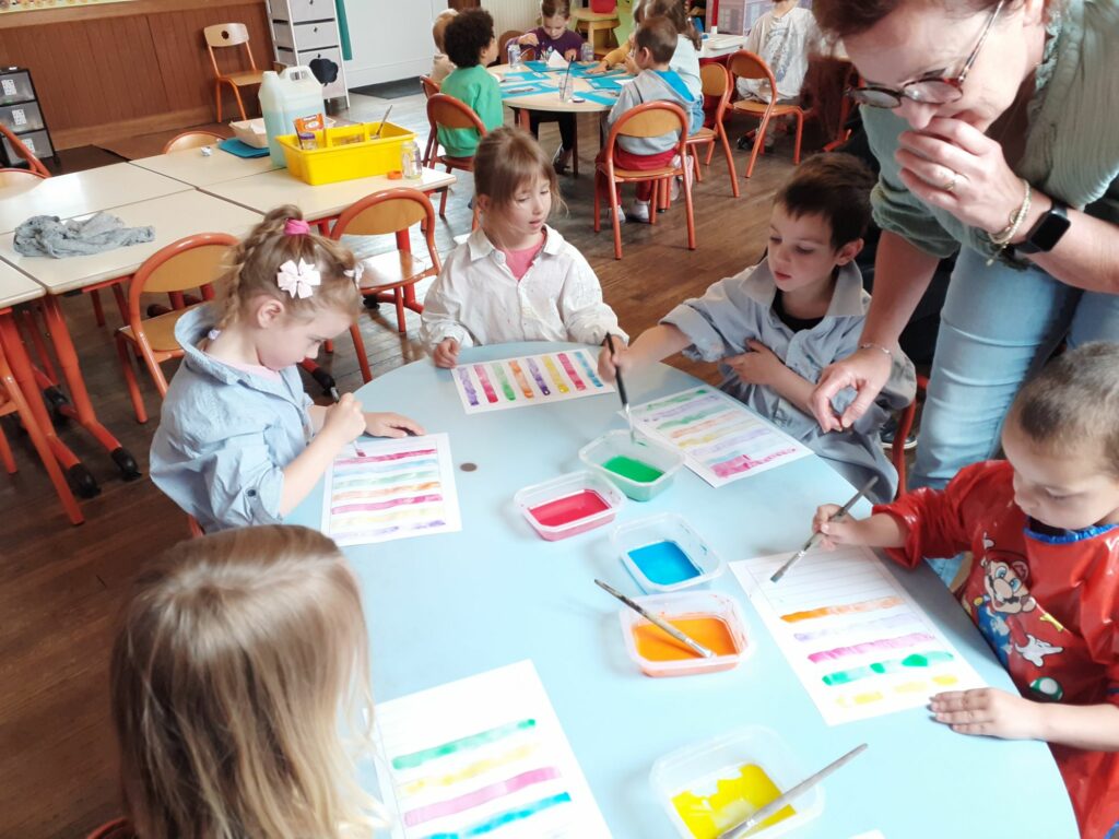 By classe de TPS/PS/MS/GS6 juin 2025Non classé Les MS peignent à la manière de SOL LEWITT. 1ère étape : les bandes verticales 2ème étape : les vagues
