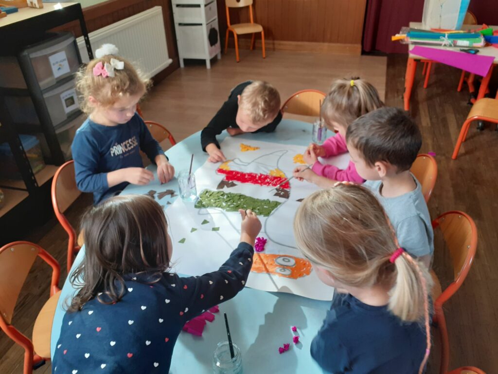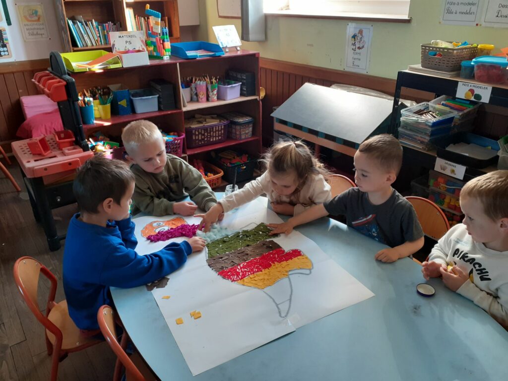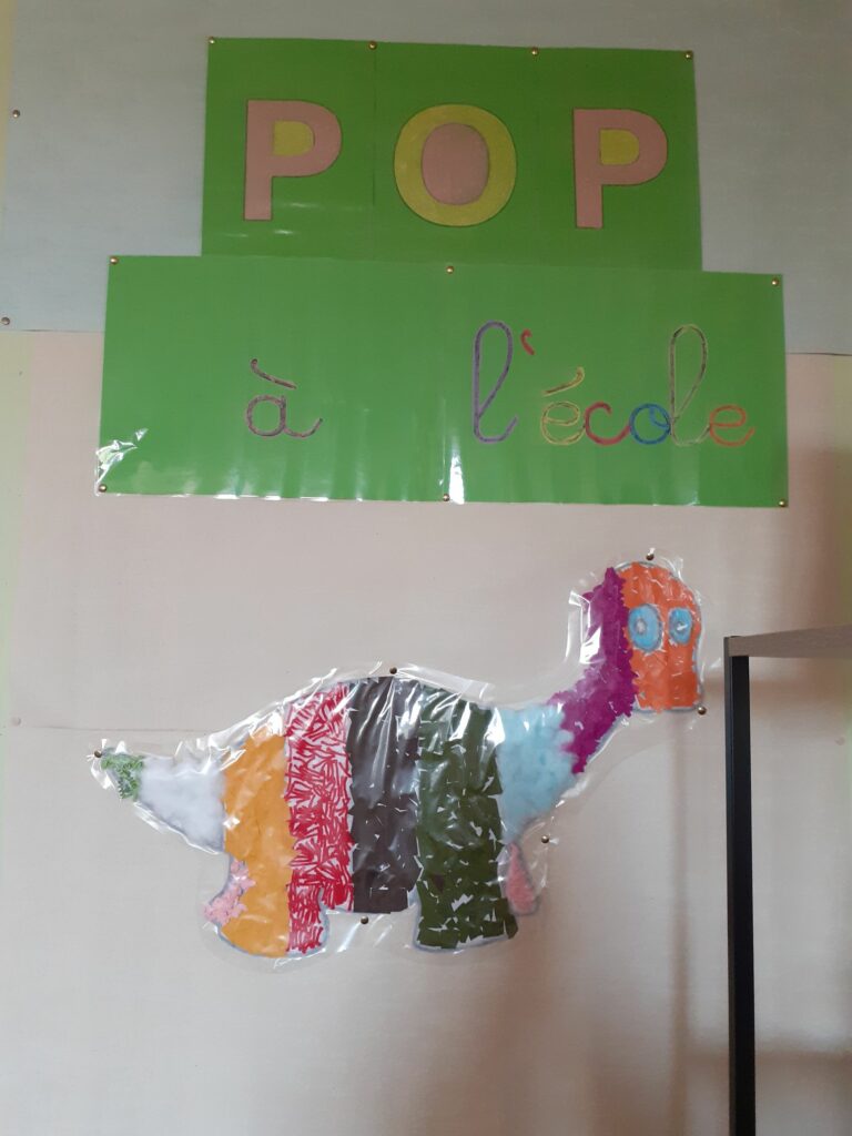 Tous les élèves ont participé à la réalisation du grand POP pour décorer la classe.