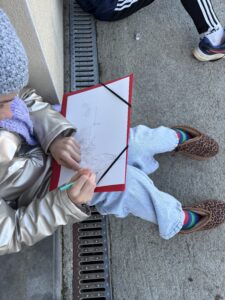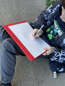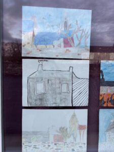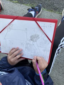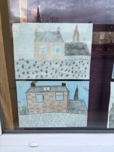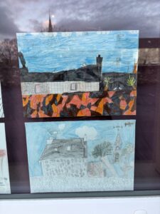 En Arts Visuels, nous avons appris à dessiner le plus précis possible le paysage que nous voyons en face de notre classe.