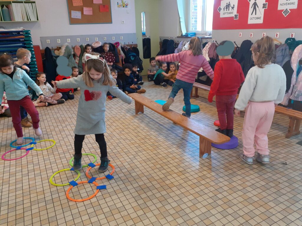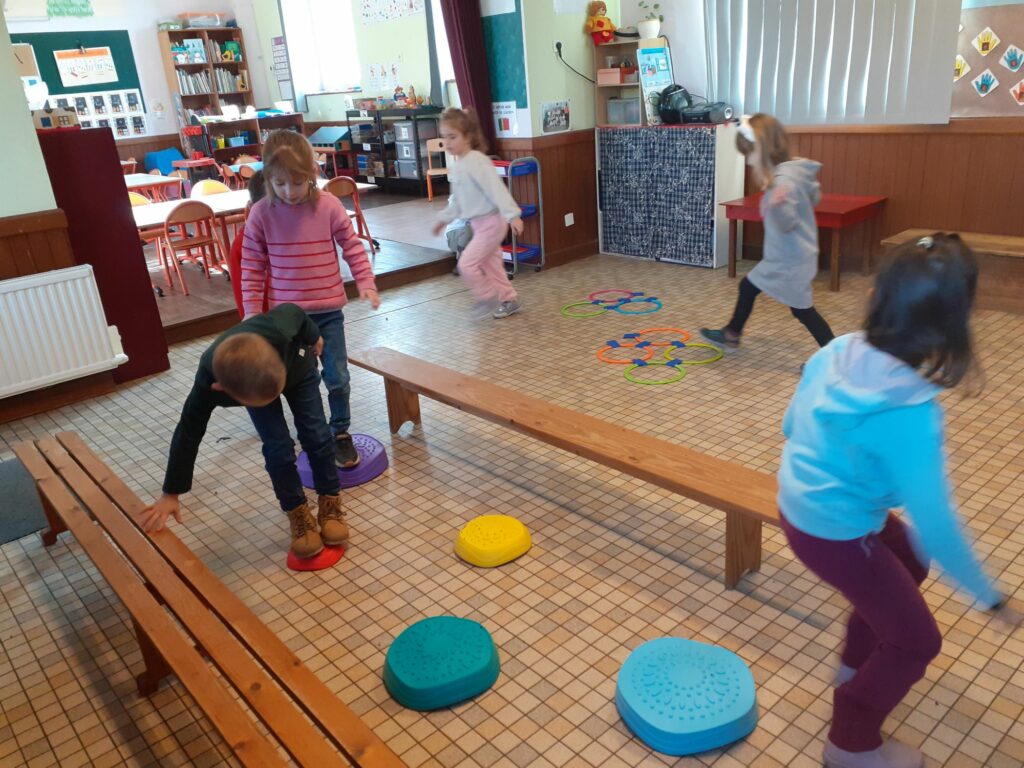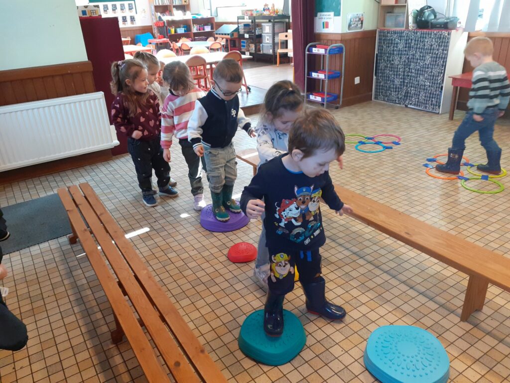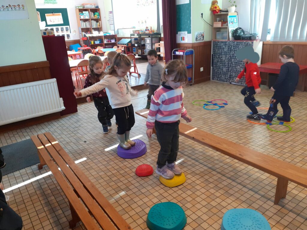 En motricité , nous avons traversé la rivière aux crocodiles 🐊 et le petit bassin avec les poissons🐠