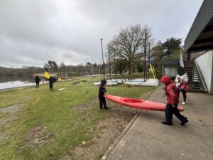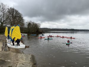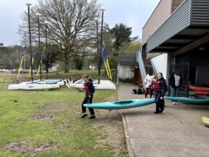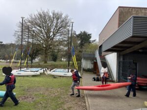Ce matin, nous sommes allés à l’étang Aumée commencer notre cycle d’activités nautiques. Nous avons été divisés en deux groupes: un groupe à la voile et un groupe au kayak. Nous avons d’abord découvert nos équipements ainsi que quelques termes nautiques. Ensuite, nous sommes allés sur l’eau. Nous avons ressenti nos premières sensations et appris à diriger notre kayak ou notre bateau à voile.