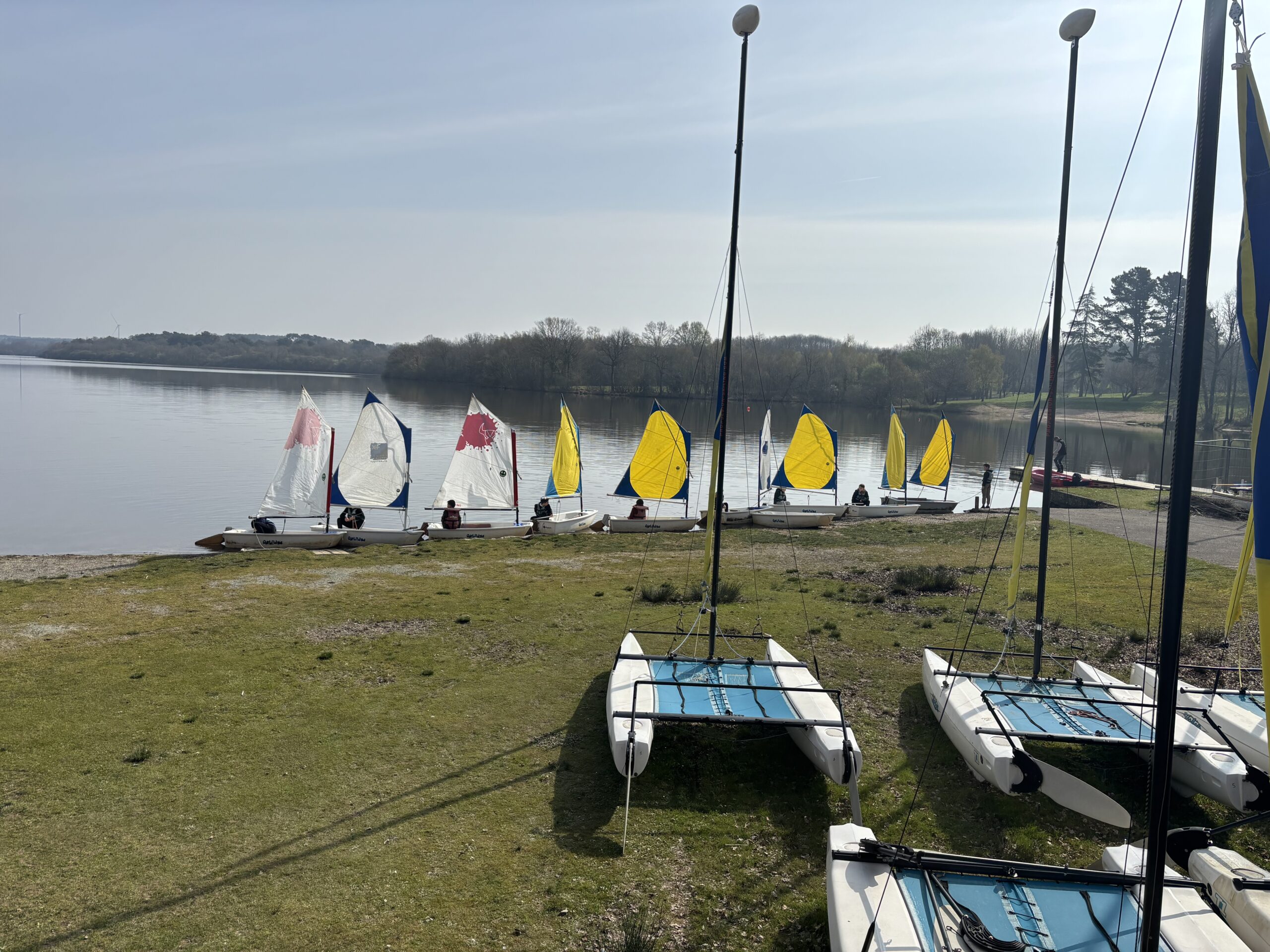 Ce matin, les kayakistes ont fait le tour de l’étang et se sont arrêtés au pied de la forêt afin d’y découvrir les différentes sortes d’arbres. Ils ont appris à repérer le NORD en observant la mousse sur les arbres. De leur côté, les optimistes ont commencé par un cours sur les allures du bateau.