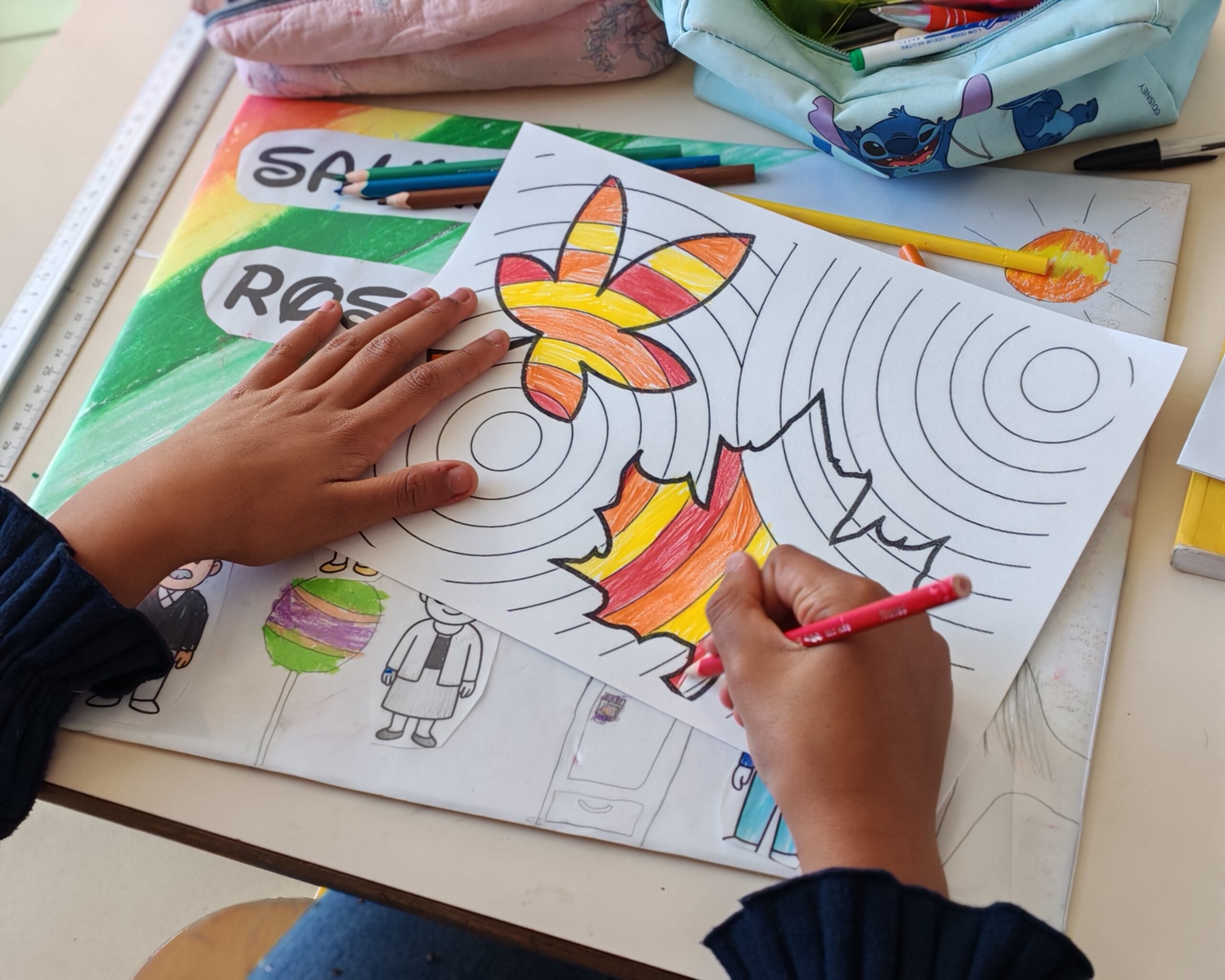 Sous l’oeil attentif de notre mascotte Taoki, voici nos écrivains en herbe qui s’appliquent, bravo!