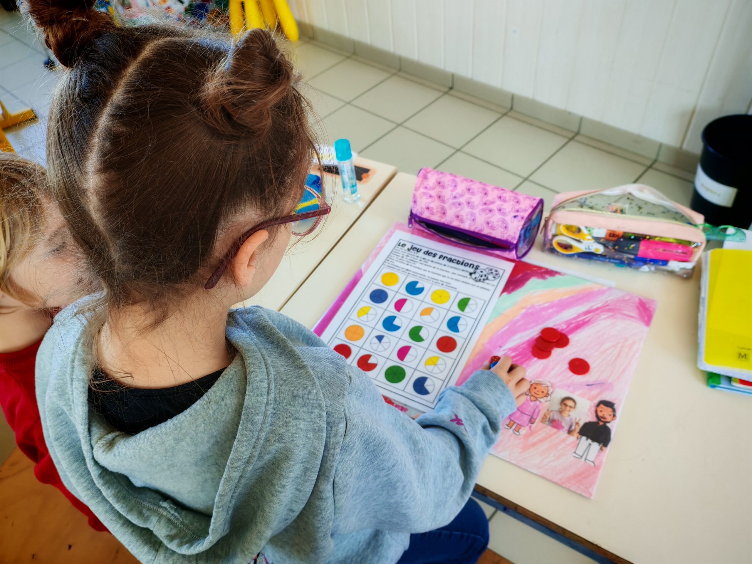 Aujourd’hui, nous avons commencé à travailler sur les fractions. Des gâteaux et des pizzas et c’est parti, tout le monde a compris!